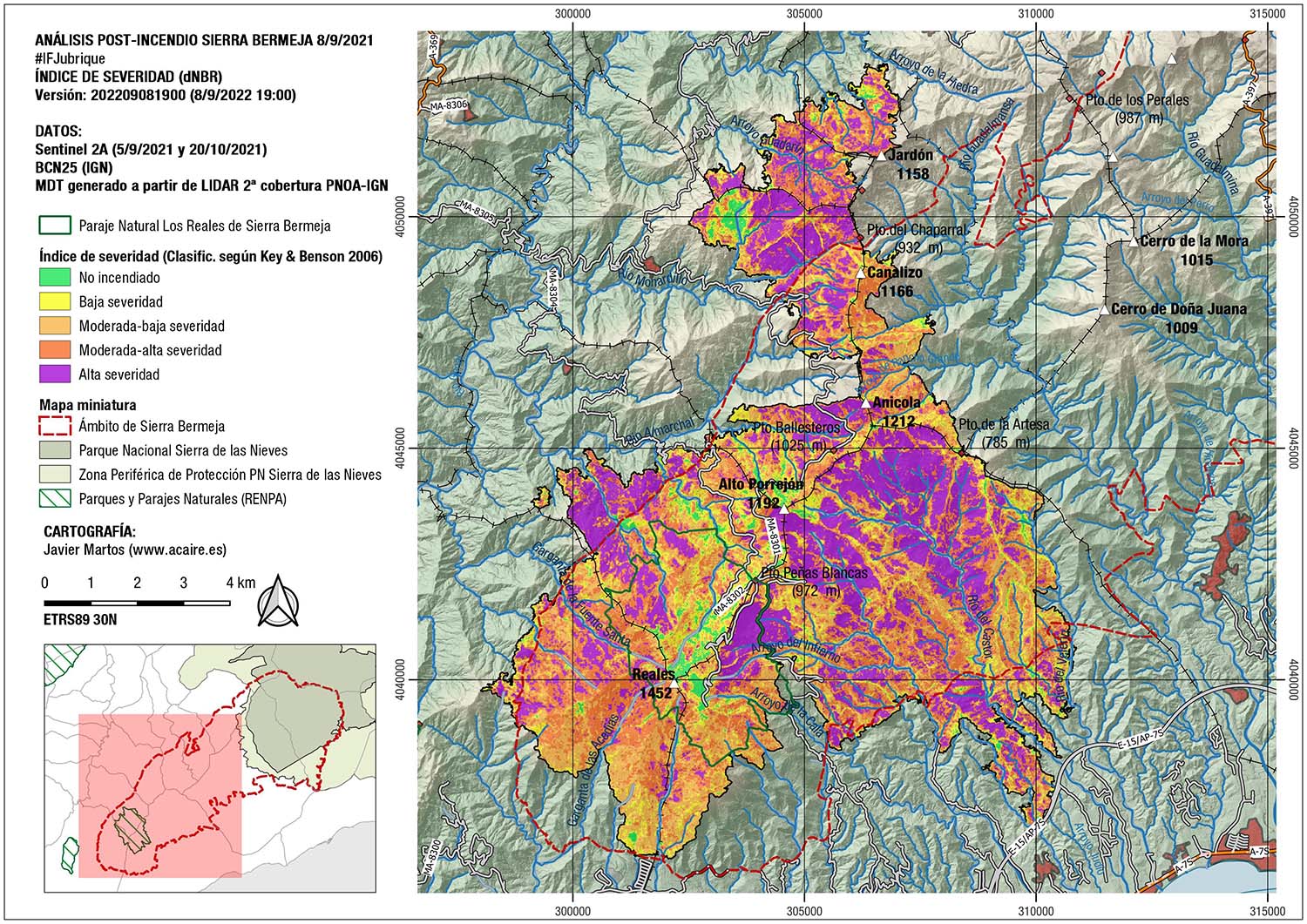 El foco hay que ponerlo no solo en la extensión del incendio, sino en el grado de severidad con que el fuego afectó a la superficie quemada. En ese sentido, el incendio de este año 2022, que calcinó 4.600 hectáreas (#IFPujerra) y el del año pasado, que afectó las 9.581 hectáreas (#IFJubrique), son muy diferentes, no solo en la extensión, sino fundamentalmente porque las zonas donde la severidad fue muy alta son amplísimas en el del año pasado.. Seguir leyendo aquí